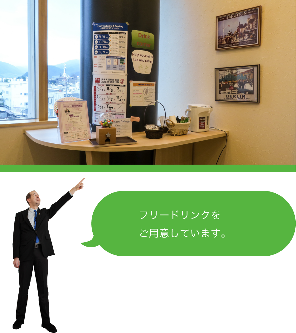 松本校は大きな洋館風の建物で、まるで外国の家にいるような雰囲気の中で英語を学べます。