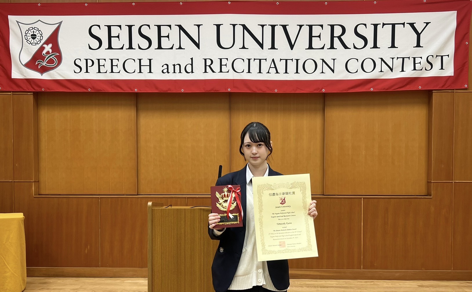 2025年11月8日(土)、清泉大学上野キャンパスでおこなわれた「長野県高校生 英語スピーチ・レシテーションコンテスト」に、AtoZに通学中の彩菜さんが参加しました。